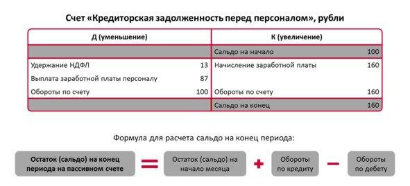 Для пассивных счетов кредит счета означает его увеличение, а дебет уменьшение. Сальдо на конец месяца всегда кредитовое.