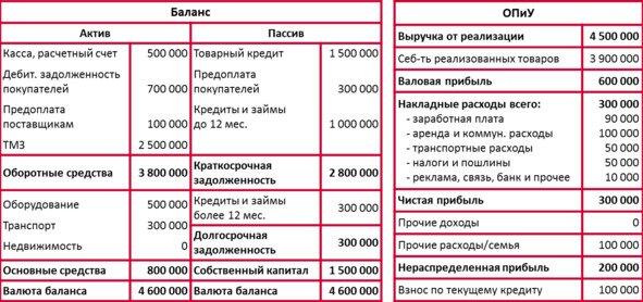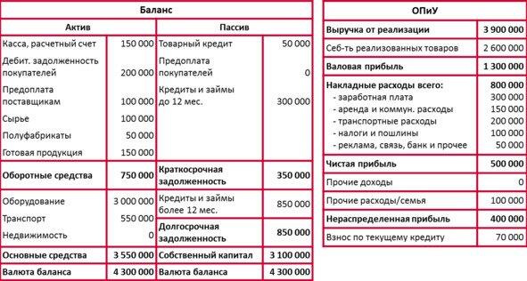 Компания занимается оптовой торговлей продуктами быстрого приготовления (каши, супы, сухие завтраки и прочее). Запрашивается кредит в сумме 1 000 000 рублей сроком на 12 месяцев на пополнение оборотных средств.