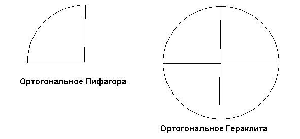Рис. 3. Ортогональное Пифагора и ортогональное Гераклита