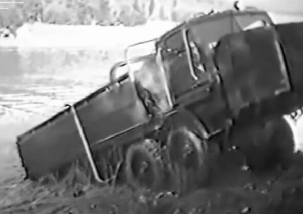 Четырехосный плавающий грузовик Урал-53221. Спецкабина с откидными боковыми окнами и волноотражающим щитом