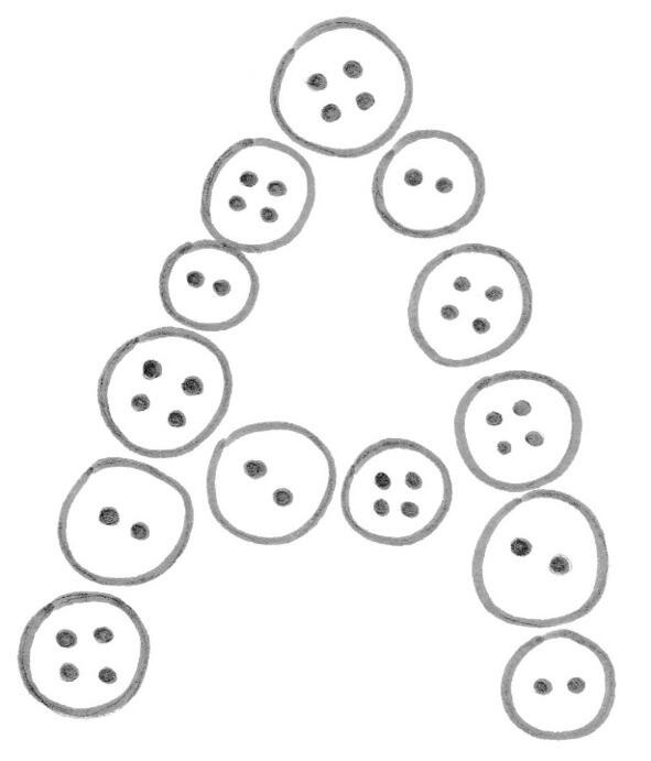 буквы могут быть не только двумерными, продемонстрируйте это ребёнку, создавая их из подручных материалов: круп, солёного теста, пуговиц, счётных палочек и других подходящих для этого предметов;
