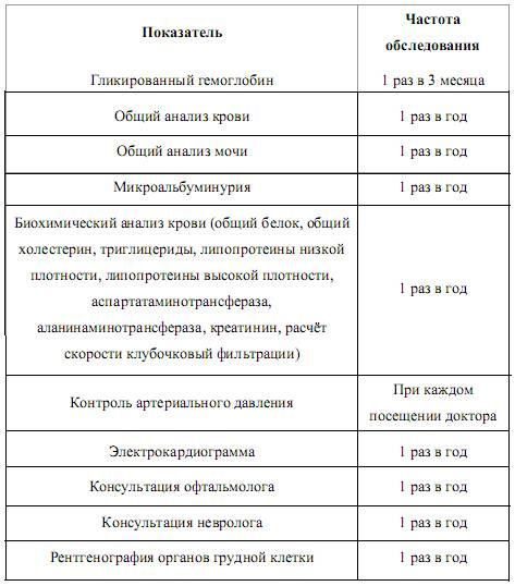 План обследования при сахарном диабете 1 типа (в условиях поликлиники)