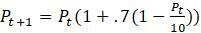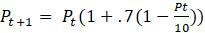 являются равновесиями, но популяция, близкая к 0, имеет тенденцию отходить от 0, тогда как популяция близкая к 10 имеет тенденцию двигаться к 10. Таким образом, 0 является неустойчивым или отталкивающим равновесием, а 10 является стабильным или притягивающим равновесием.