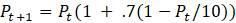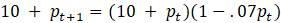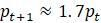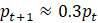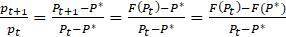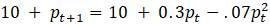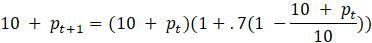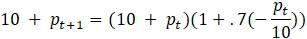 Это означает, что значения близкие к равновесию будут иметь отклонение от равновесия, уменьшающееся примерно в 0.3 раза с каждым последующим шагом времени. Поэтому небольшие отклонение от равновесия в дальнейшем уменьшаются и