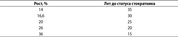 Фелпс дал мне небольшую таблицу, которая показывает, сколько и как долго акции должны увеличивать свою стоимость, чтобы умножиться в сто раз.