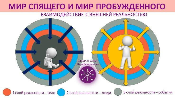 На этом рисунке я схематично изобразила различия обычного мышления и