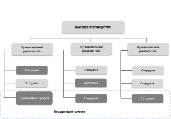Поэтому рассматривать слабую матрицу как целевую организационную структуру компании в рамках проекта внедрения проектного управления не самая лучшая идея. Для работы с проектами существуют более эффективные структуры.
