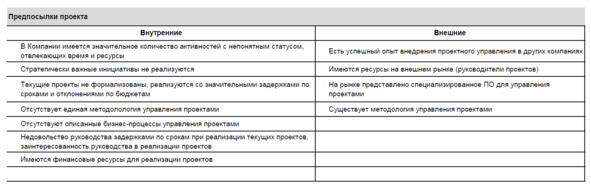 Раздел «Предпосылки проекта» из Устава проекта внедрения проектного управления в компании-лидере рынка в России в своей отрасли (ИТ сфера)
