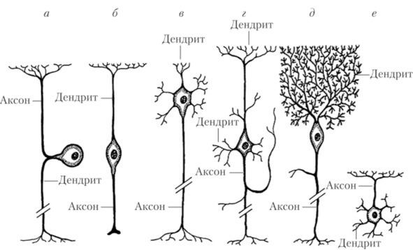 Видов нейронов довольно много, каждый предназначен для собственной деятельности: слух, зрение, моторика и т. д. В ассоциативной коре действуют особые ассоциативные нейроны, способные обрабатывать с сигналами от разных областей одновременно. С помощью них мы формируем целостное впечатление об объекте, процессе и т. п. думаем, творим и т. д. У человека и некоторых высших животных существуют нейроны, которых нет у других. Или нейрон человека и насекомых существенно отличаются друг от друга по размерам, но принципиальной разницы между нейронами млекопитающих почти нет, и даже крупные специалисты не способны отличить нейрон человека от мыши или лошади.