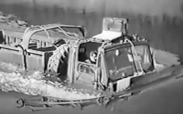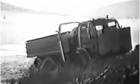 Урал-53221 выезжает на берег. Установлена специальная кабина с откидными боковыми окнами и волноотражающим щитом