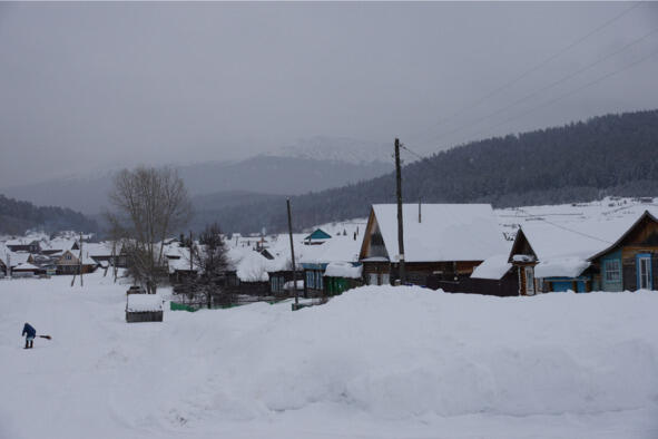 Первая ступень это поселок. Здесь в каждом втором доме построен флигелек для постояльцев, обычно хорошо оборудованный и с удобствами, включая горячую воду. Есть несколько турбаз, магазинов. И это замечательно: здоровая конкуренция, если не здоровенная. Хозяева дома сразу же предложат вам трансфер до контрольно-пропускного пункта парка, катание на лошадях (летом), снегоходах (зимой), баню и всё остальное, что могут предложить. Наших мы расстроили: баня нам была ни к чему, а своя «буханка» позволяла самостоятельно подъехать по лесной дороге к КПП. Впрочем, если местные не преувеличивают, летом этого лучше не делать в лужи на дороге машина ныряет, чуть ли не по стекла, и надо ещё знать, в какой угол какой лужи нырять безопаснее Зимник был малость расквашен, все же конец марта, но мы справились.