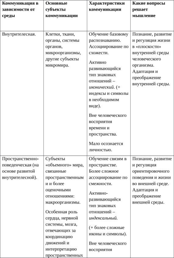 Соответствующие им виды мышления определяют и виды коммуникации, в которые мы вступаем (Таб. 1.1.).