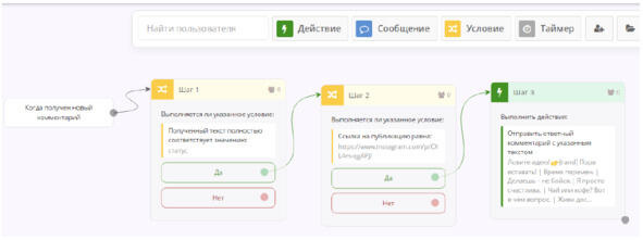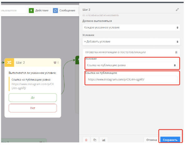 Условие различные условия проверки. Мы будем использовать: проверку ключевого слова, ссылки на пост.
