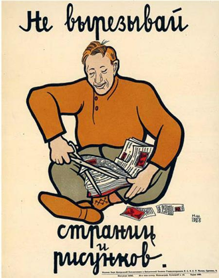 Илл. 12. Связь через разрезывание: плакат, выпущенный Бюро Центральной катологизации Главного политико-просветительного комитета и Государственного издательства РСФСР (М.: Мосполиграф, 1926). Худ. Илья Шлепянов. Коллекция Российской государственной библиотеки.