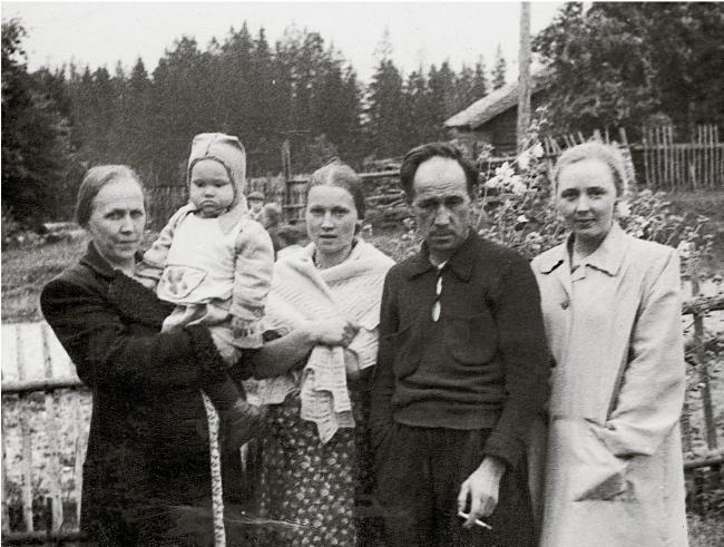 Илл. 10. Слева направо: Мария Иванова-Мастеркова, Игорь Холин, Лидия, Алексей и Нина Мастерковы. Лето 1950. Архив М.М.-Т. и В.А.-Т.