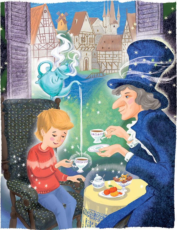 Андерсен увидел Венину машинку времени и улыбнулся. Его сказочная шляпа поднялась сама собой и помахала Вене. А на подоконнике андерсеновского домика уже подпрыгивал от нетерпения фарфоровый чайник.