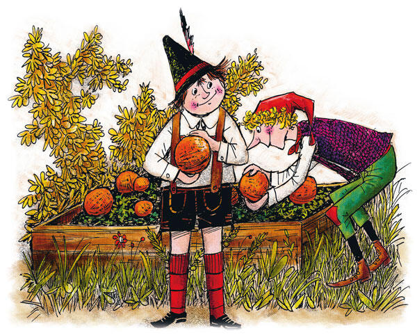 А мы тебе гостинец принесли, сказал Касперль, протягивая крокопсу тыкву. Вот, попробуй.