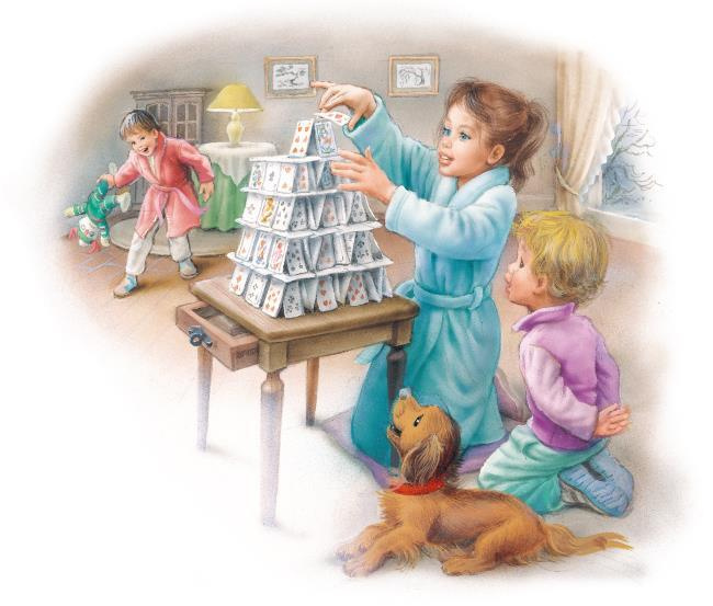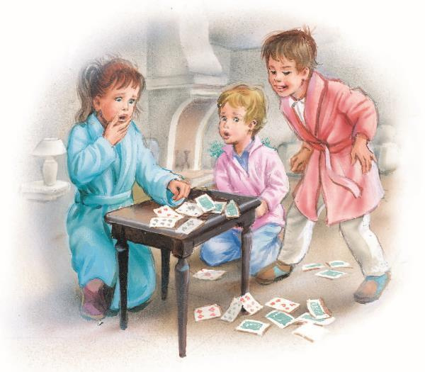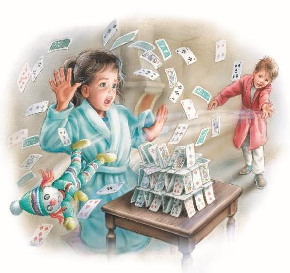Тряпичный клоун врезается в хрупкое строение, карты разлетаются, падают на пол, как осенние листья. Мой домик, мой замок разрушен! Миша смотрит и чуть не плачет.