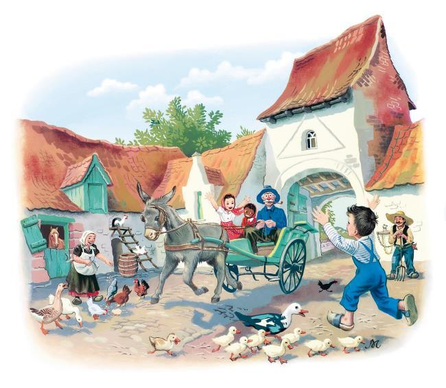 На ферме всё так же, как было прошлым летом. Я узнаю большой двор, конюшню, птичник. И дядя с тётей совсем не изменились. У тёти Зои всё тот же белый фартук, у дяди Гриши старая соломенная шляпа.
