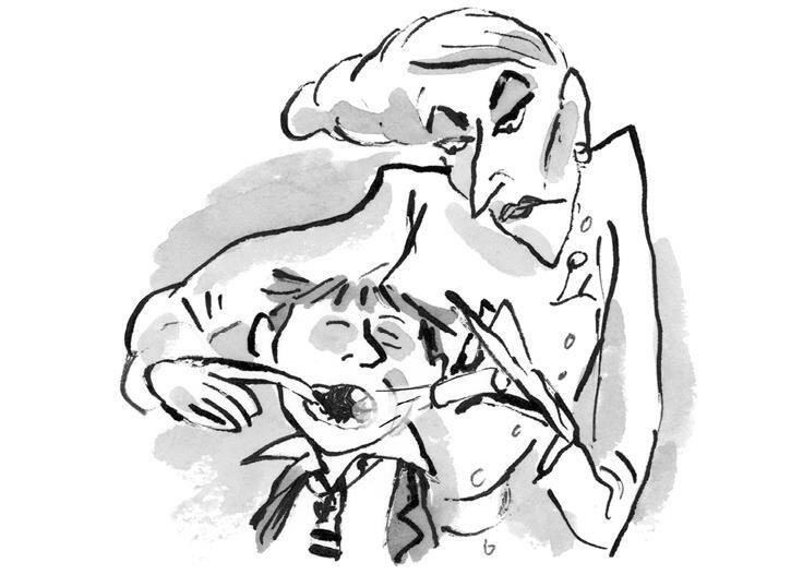 Внезапно Альфи почувствовал, что не может не слушаться. Он открыл рот, и мисс Корень, заглянув туда, даже застонала от удовольствия: