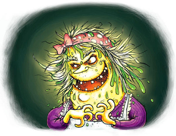 Потом госпожа Вурм засветилась изнутри как тыква на Хеллоуин. Лицо её расплылось, как будто стало жидким. Брови надулись, а с волос закапала зелёная жижа. Рот растянулся в отвратительной ухмылке.