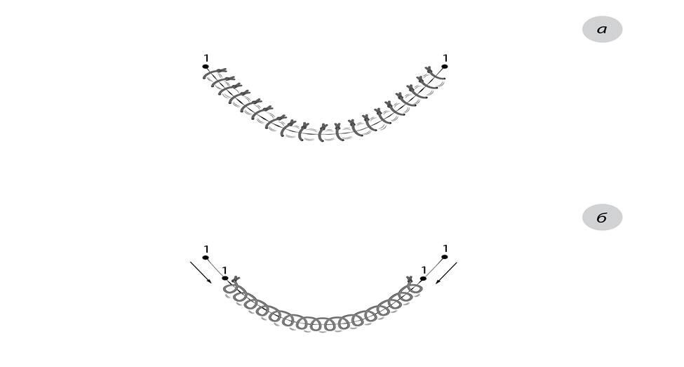 а отдельные швы; б непрерывный шов; 1 расположение конечных точек.