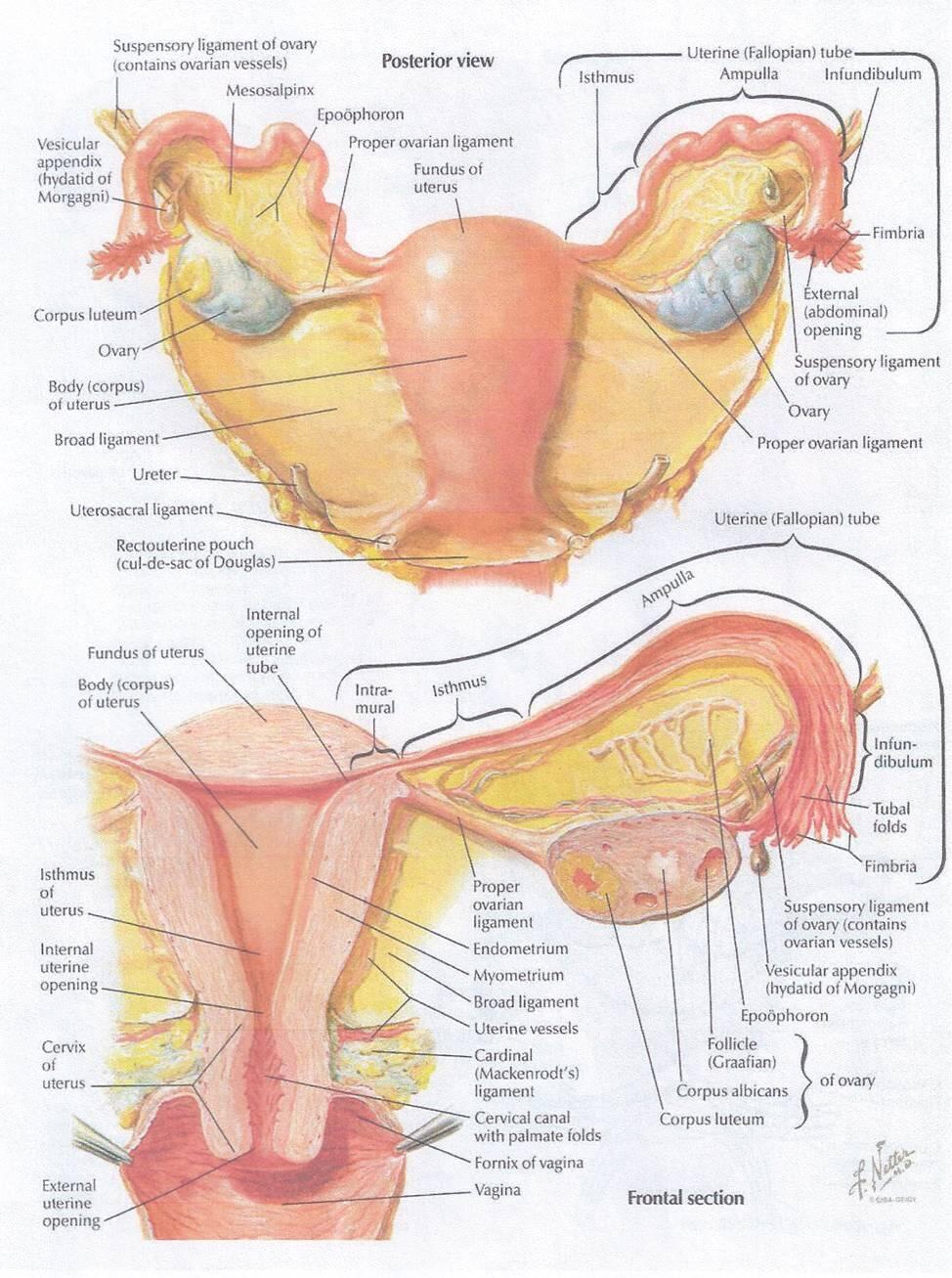 Рис. 1 Матка с придатками (вид сзади, фронтальный разрез по Р.Д. Синельникову).