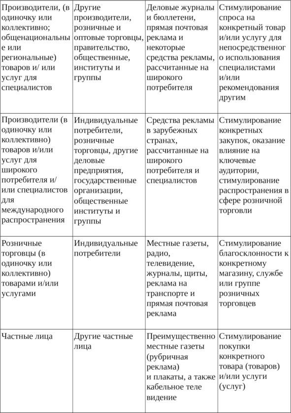 организатор рекламы в зависимости от товара, его вероятного спроса на него может выбирать наиболее действенный метод воздействия рекламы.