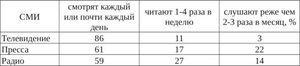 Примерно 80% представителей разных возрастных групп пользуются услугами телевидения.