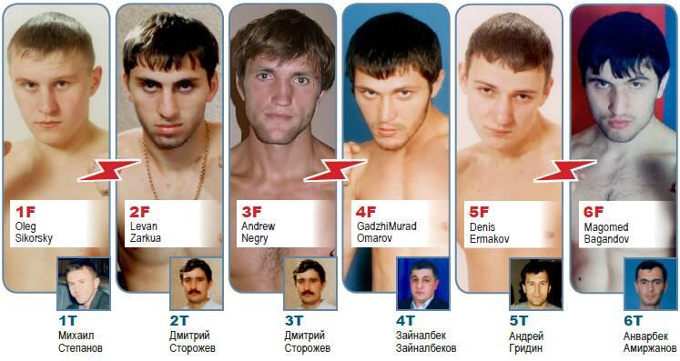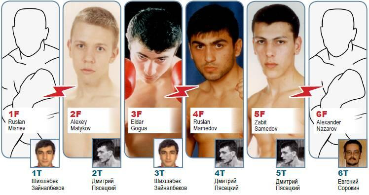 Забит Самедов 5F (Минск, профдебют, тренер Дмитрий Пясецкий 5T) W5 Александр Назаров 6F (Нижний Новгород, профдебют, тренер Евгений Сорокин 6T).