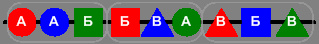 Чтобы обозначить изначальную изолированность тех или иных доноров друг от друга, обозначим каждый набор определенной формой вроде кругов, квадратов и треугольников. Скажем, три разноцветных круга будут характеризовать какое-то историческое событие, связанное с персонажем А. Квадраты и треугольники соответственно с персонажами Б и В.