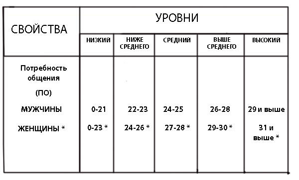 Бланк для заполнения ПО (потребность в общении)