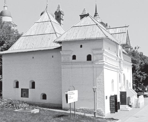 Прямоугольный объем справа вторая четверть XVII в., левая часть постройка грозненского времени, под ней более древний подвал, смотрящий наружу двумя нижними окнами
