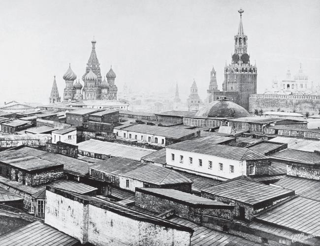 Судя по чертежам Шпажного и Суконного рядов 1790 года[19], линии Верхних рядов были разделены на отдельные двухъярусные сводчатые ячейки. Каменные лестницы вели в верхние торговые помещения, обращенные внутрь рядов небольшими окошками. Проходы между рядами достигали ширины шести метров и перекрывались сводами со световыми проемами. Эта система устройства торговых улиц очень близка торговым кварталам в мединах старых городов Ближнего Востока и Северной Африки например, в Иерусалиме и Тунисе. Там присутствуют те же сводчатые ряды-улицы (в Тунисе они отчего-то называются «суки») с квадратными проемами световых фонарей, со сводчатыми же помещениями лавок по обе стороны. Увлекательная теснота, кирпич и дерево, старые рукописные вывески, настоящий средневековый рынок к сожалению, в Москве подобная неформальность не имела шансов пережить ХХ, и даже XIX век.