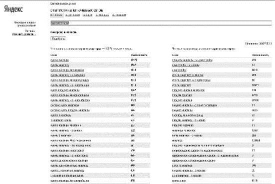 Например, «купить квартиру» в не самом большом городе Кемерово ежемесячно на Яндексе ищут 6000 человек. После этого мы передаем большой привет агентствам недвижимости, которые продолжают рекламироваться в толстых газетах с мелким шрифтом и не используют интернет-рекламу. 6000 человек, находясь на последней стадии выбора агентства недвижимости, готовы куда-то прийти с деньгами! Они делают запросы на Яндексе, получают небольшое количество рекламных объявлений и идут на сайты этих компаний.