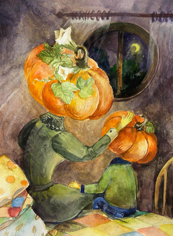 Братья и сестры-тыквы на его глазах пухли и наливались соком день ото дня. А Мистер тыковка так и оставался милым малышом. Он очень переживал по этому поводу.