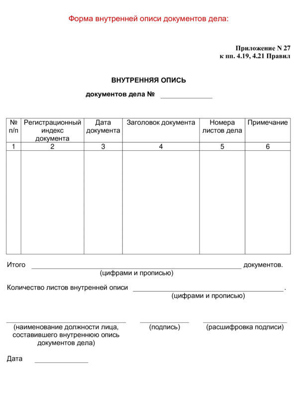 Благодаря внутренней описи поиск нужных бумаг в деле становится намного быстрее и удобнее. Также эта опись необходима при передаче дел на архивное хранение.