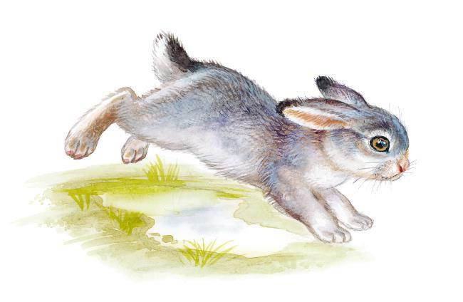 Уселся зайчонок на широкий бобровый хвост, крепко лапками держится. Нырнул Бобр в воду, хвостом вильнул, не удержался, как пуля вылетел Листопадничек из воды. Волей-неволей пришлось к берегу плыть самому. Вышел на берег, фыркнул, встряхнулся и со всех ног на родное болото.