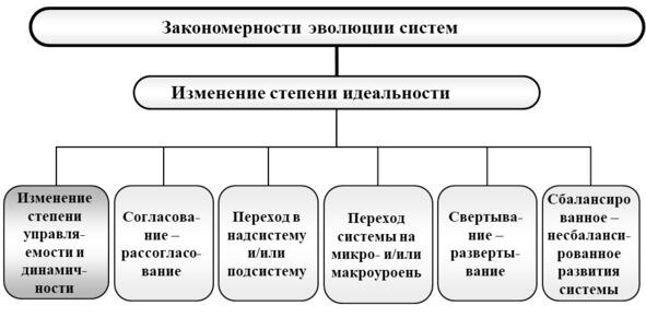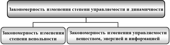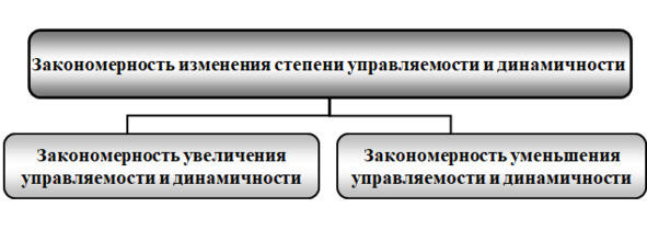Закономерность увеличения степени управляемости и динамичности заключается в том, что любая система в своем развитии стремится стать более управляемой и боле динамичной, т. е. система должна повышать свою степень управляемости и динамичности.