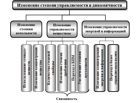 Закономерность изменения степени вепольности является следствием закономерности изменения степени управляемости и динамичности, относящийся к группе закономерностей эволюции систем (рис. 23.1).