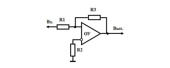 ОУ операционный усилитель, R1, R2, R3 сопротивления