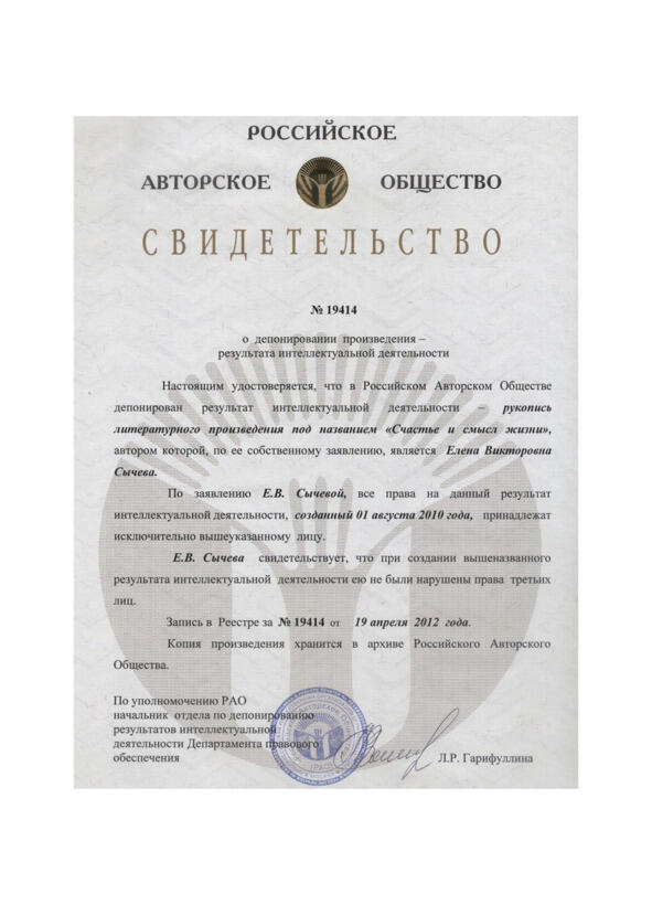 В процессе исследований, сбора и анализа информации я обобщила полученные мной знания, структурировала их и привела в систему взаимосвязи счастья человека и его предназначения.