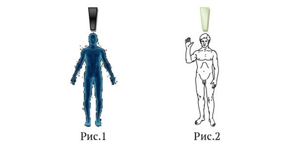 На рис. 1 видно, как тело и душа человека забиты «шлаком», как внутри него находится «пробка» в виде болезней, страхов, обид, неуверенности, сомнений, ненависти, невежества. Могут ли энергия и информация пробиться сквозь эту пробку, чтобы проникнуть внутрь такого человека? Конечно, нет. И тогда становится понятно, почему одни люди никак не могут найти себя и реализовать свои цели, прозябая в бедности и болезнях, а другие здоровы, счастливы и легко достигают всего, чего хотят, именно потому, что у них хорошо развита интуиция способность их проводящего канала, воображаемой «трубы», пропускать внутрь информацию и энергию из ЭИП.