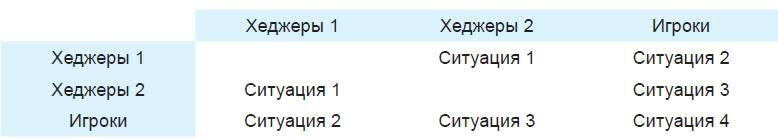 Составим матрицу участников срочного рынка у нас может быть четыре типа ситуаций.