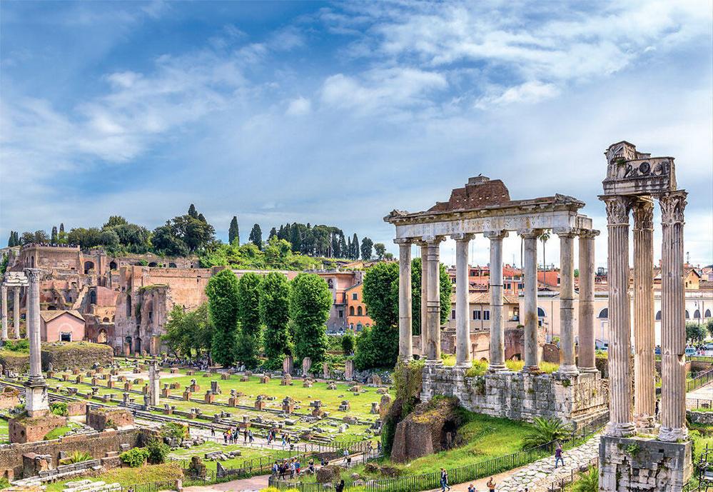 Сохранившиеся до наших дней руины храма Сатурна в Риме (колоннада из восьми колонн справа)