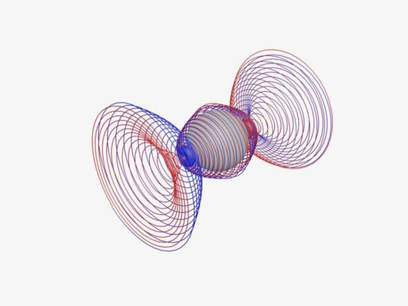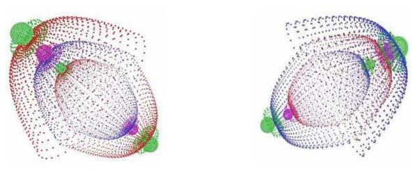 Фото 6. Схемы ядерных электрических оболочек протона (слева) и антипротона (справа) без указания гравитационых. В полусферических слоях рождается зона холодной безмассовой плазмы, удерживая и центрируя положения магнитных монополей ГЭММ.