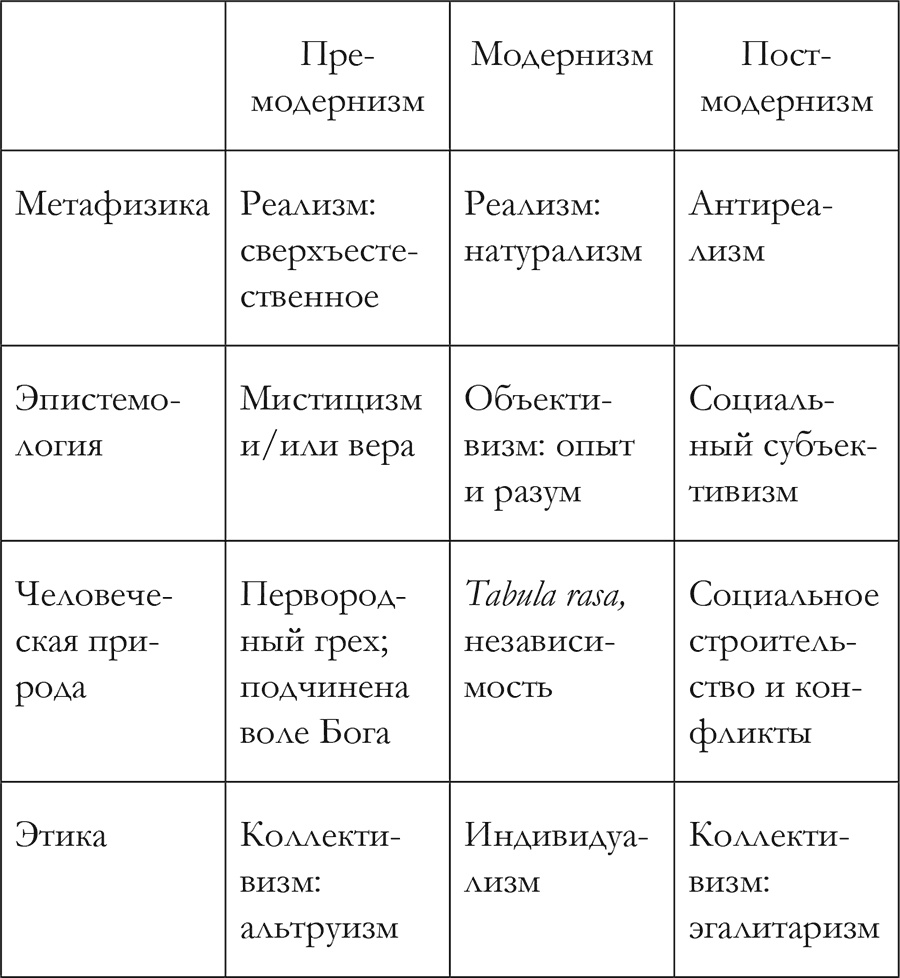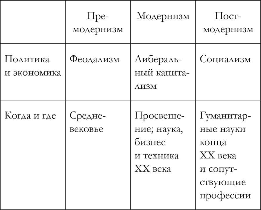 Таблица 1.3. Характерные черты домодерности, модерна и постмодерна