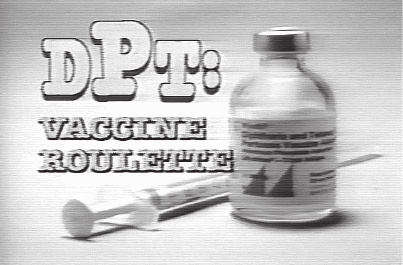Затем показывают плачущего младенца, в ручку которого воткнута игла от шприца. Реальность такова, говорит Томпсон. Все дети должны получить четыре укола АКДС, иначе их не примут в школу. Нам говорят, что благодаря этим уколам наши дети сохранят здоровье. Нам говорят, что эти уколы защитят каждого ребенка от ужасной болезни коклюша. Но укол АКДС может и причинить страшный, непоправимый вред. Под стук сердца экран заполняют изображения детей с тяжелыми физическими и умственными расстройствами, скрюченными руками и ногами они смотрят в потолок, пускают слюну, корчатся в судорогах. Затем появляется флакон с вакциной, а на ее фоне по одной буквы D-P-T: V-a-c-c-i-n-e R-o-u-l-e-t-t-e, причем появление каждой сопровождается резким пронзительным щелчком наподобие выстрела.
