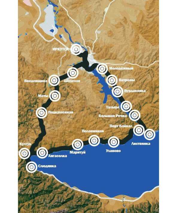 Вместе нам предстоит пройти по кольцевому маршруту без малого 300 км. Итак, в путь, дорогие друзья. Надеюсь, благодаря этим строкам, вы полюбите Иркутск и Байкал так, как люблю их я.