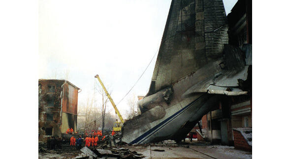 Хвост самолёта Ан-124-100 «Руслан» у дома 120